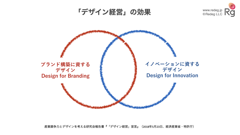 そんな中、初めてあった経営者やマネージャーの方に対して、リデグがデザインを通じてどんなお役に立てるのかを話をする際には、経済産業省・特許庁がまとめた『「デザイン経営 」宣言』という資料から引用して説明を始めることにしています。